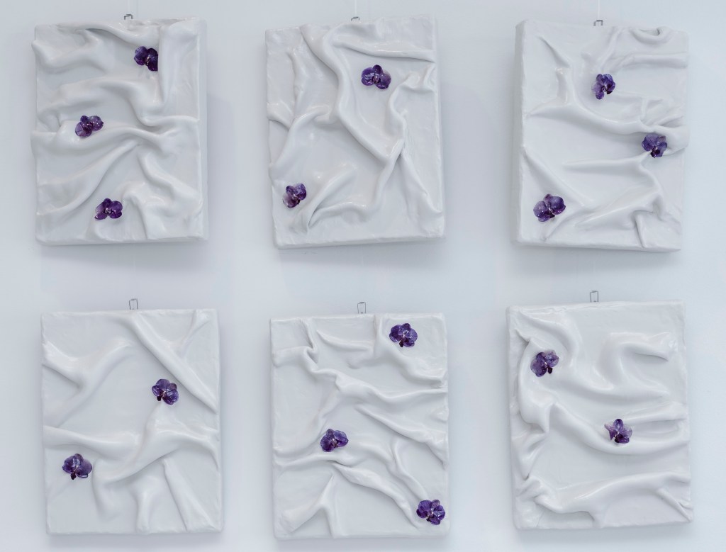 Ikebana – (6) 11×14″ Clay Sculpted on Canvas with Preserved Orchids (SOLD)
