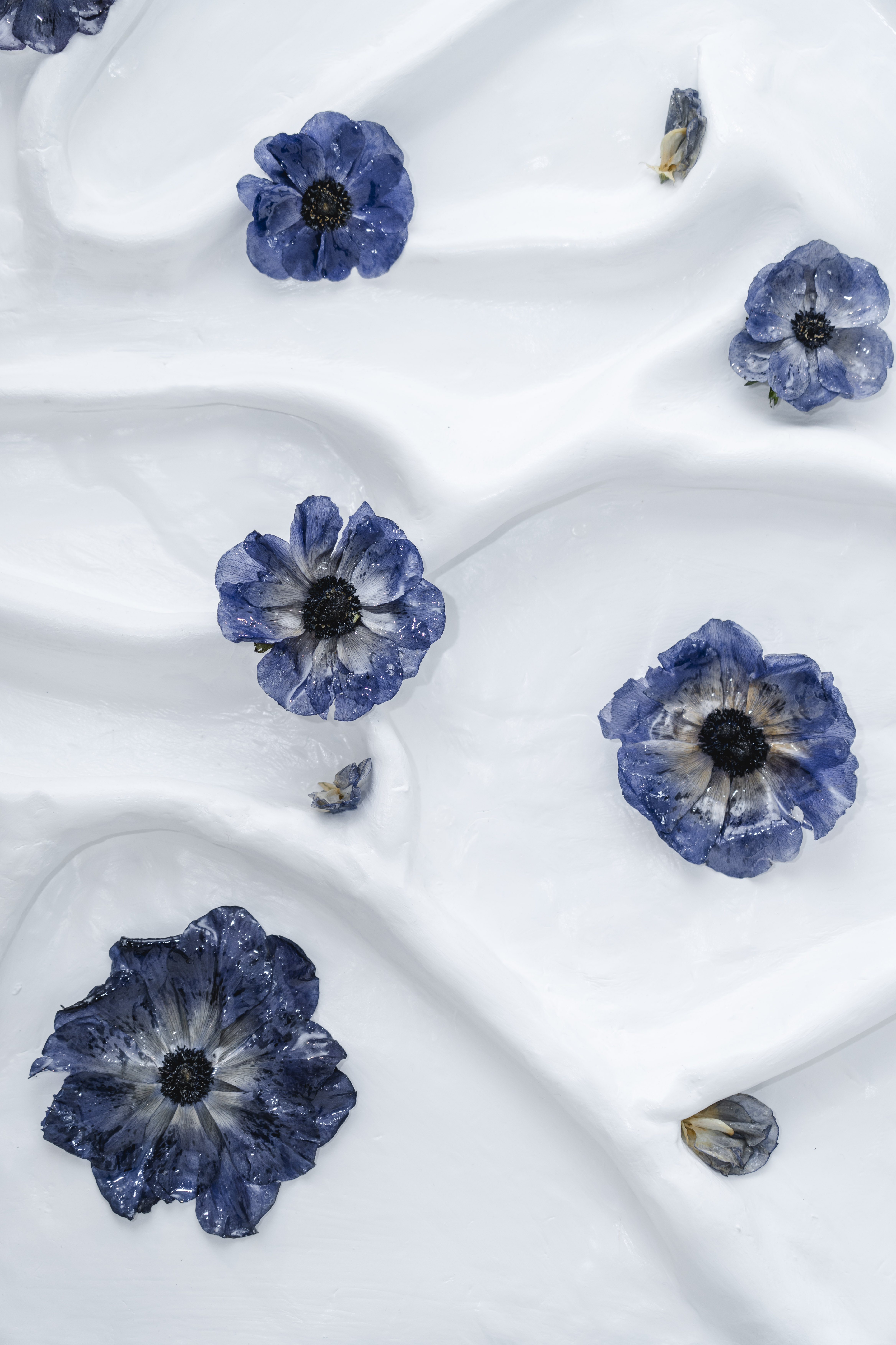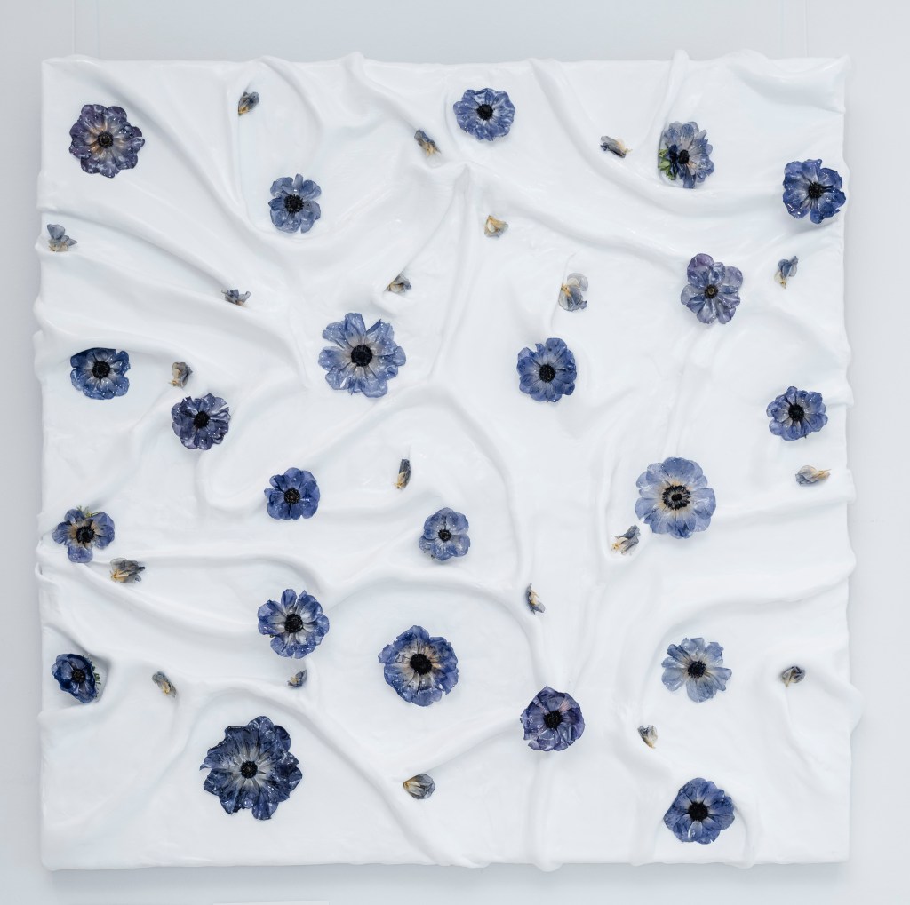 The Windflower – 36×36″ Clay Sculpted on Canvas with Preserved Anemones (SOLD)