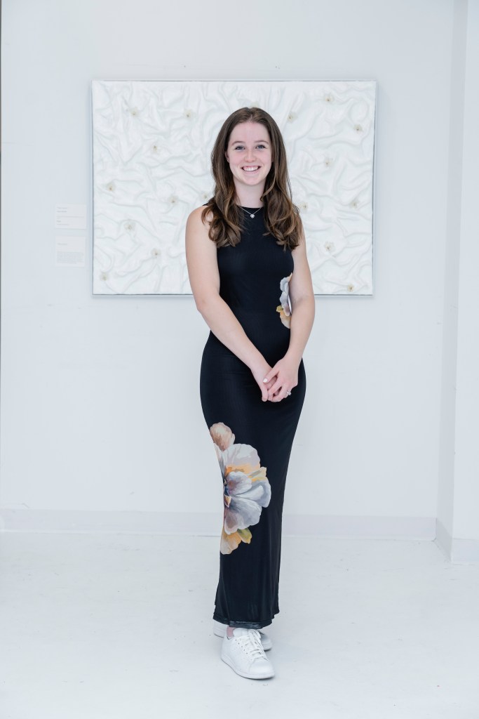 Based in Chicago, Hayley creates sculptural works that merge texture, nature, and abstraction. Her art transforms traditional canvases into dynamic, two-dimensional pieces by incorporating clay and flowers that she carefully preserves. The result is a celebration of natural beauty captured in a timeless, abstract form.